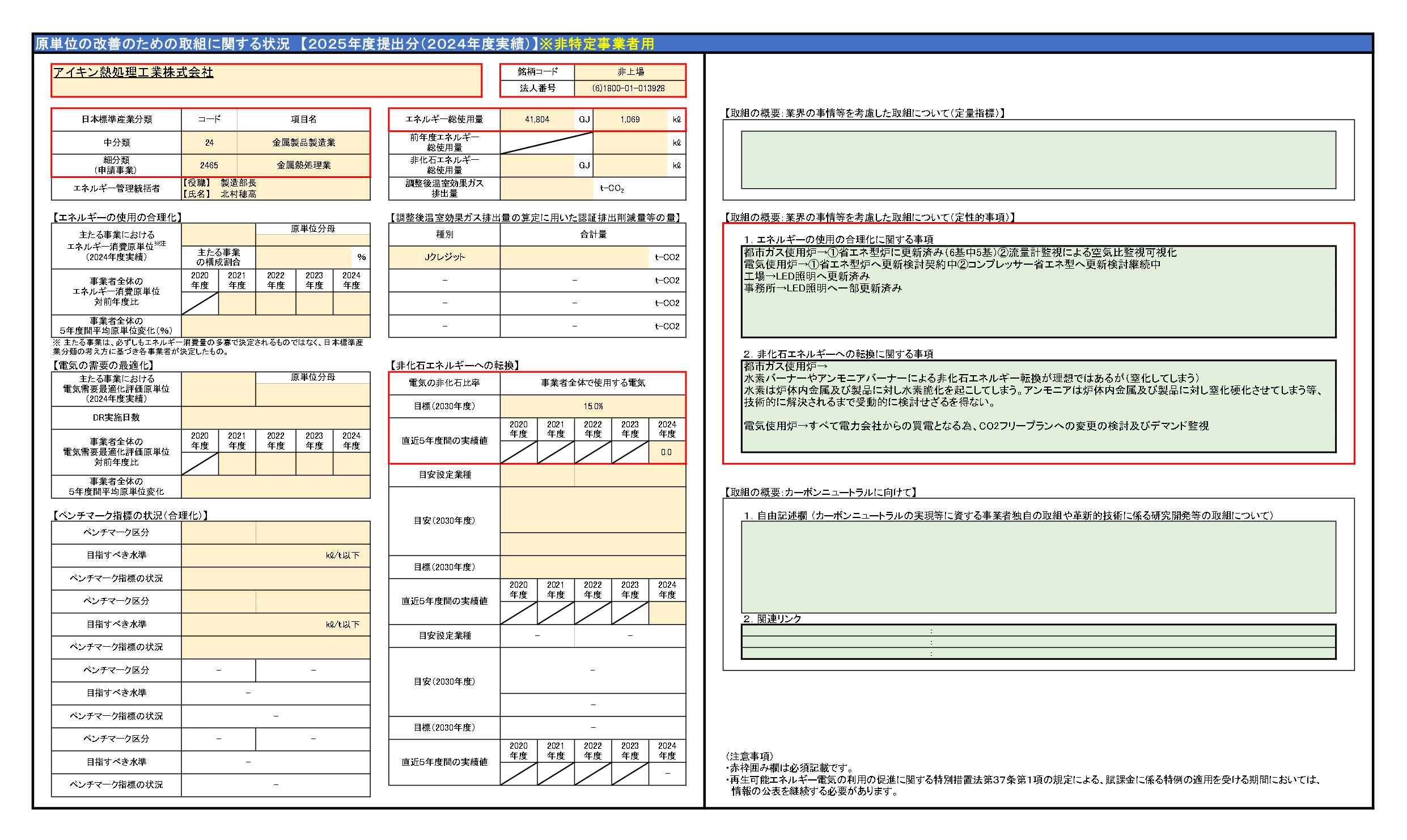 • 原単位でのエネルギー効率の監視とそれに関わる省エネ活動